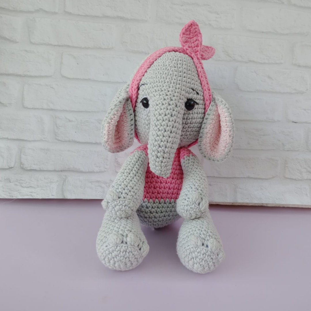 Nuestra Elefanta Amarula tejido a mano es una opción encantadora para acompañar los primeros juegos de tu bebé.