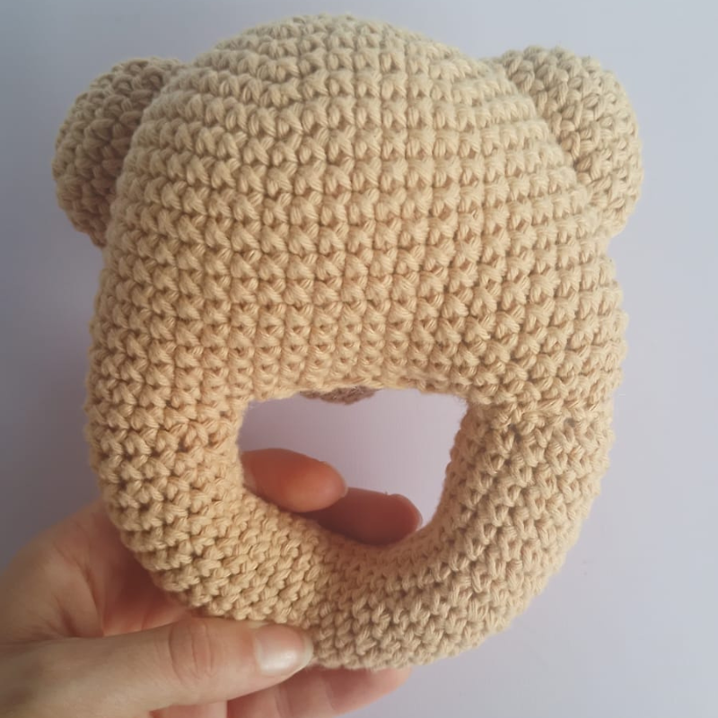 Está confeccionado en hilo de algodón suave en tono marrón claro,con su nariz bordada que le dan un toque tierno y divertido.