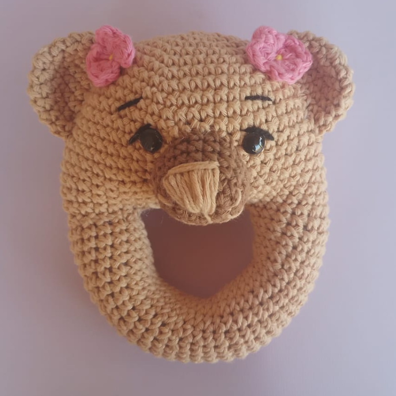 Nuestro sonajero Osa con detalles de flores es una opción encantadora para acompañar los primeros juegos de tu bebé.