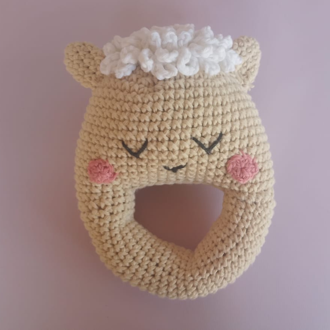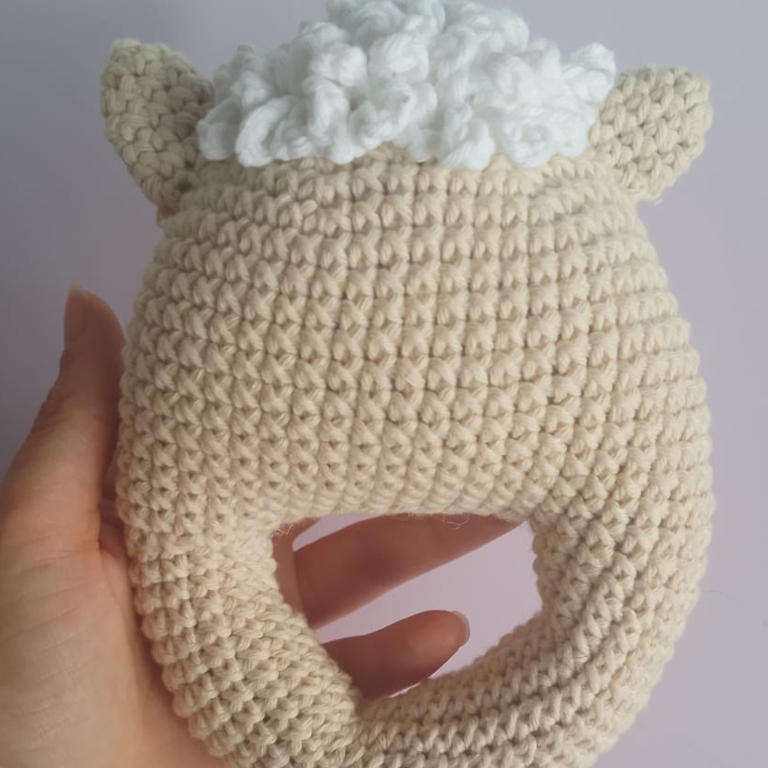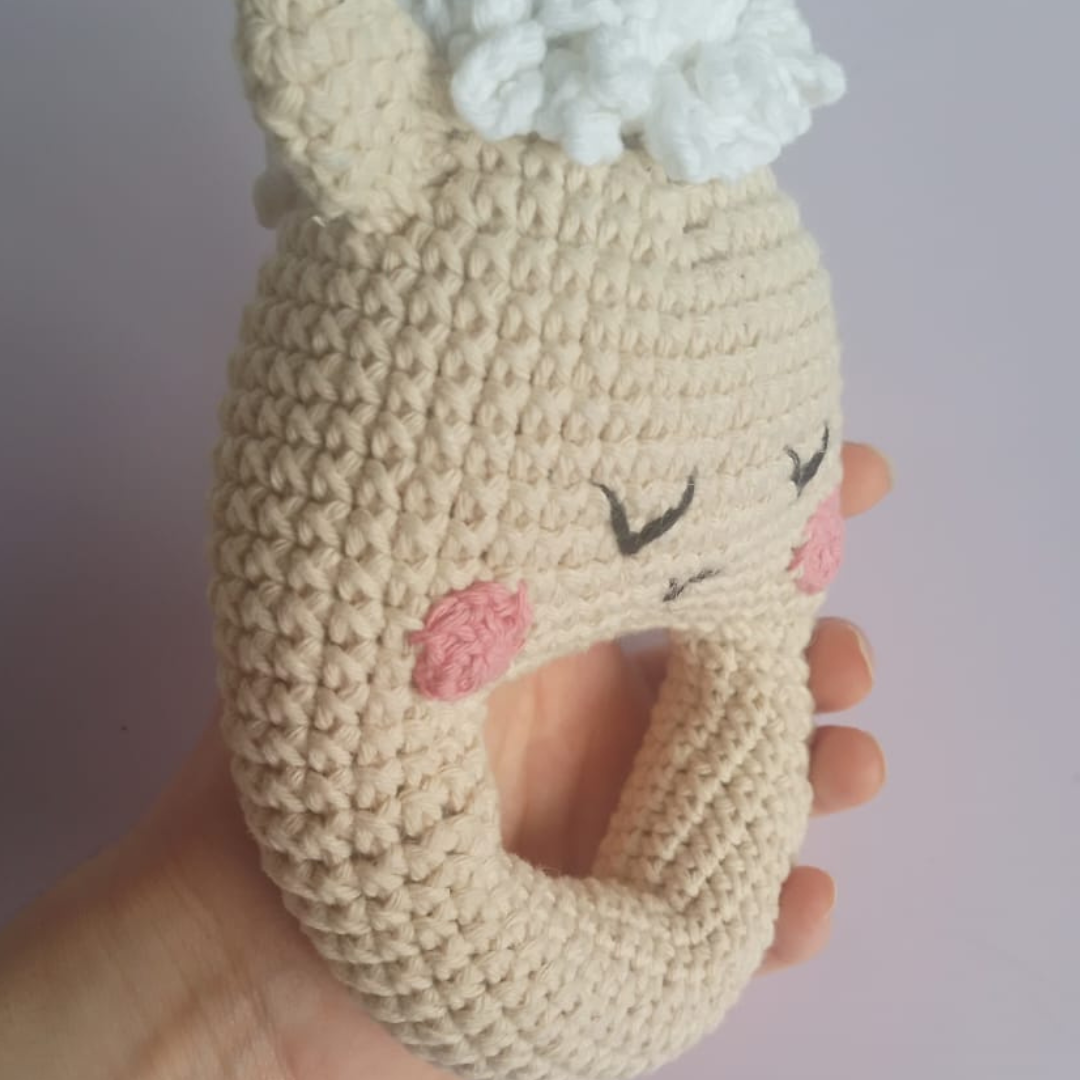 Nuestro sonajero Ovejita con sus bucles de color blanco es una opción encantadora para acompañar los primeros juegos de tu bebé.